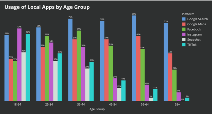 Instagram is the leading search platform for the 18-24 demographic; however, TikTok is in a close second place, with 62% usage for search, while Google is third at 61%.